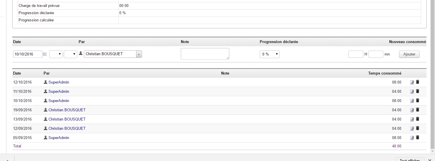 How to be able to extract the list of day / hours charged to a project? (Especially to change any earlier date)