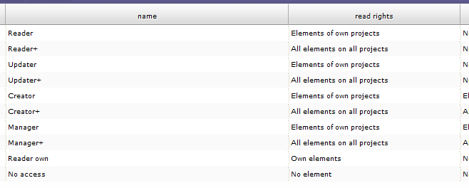 But which right (which line) must I modify in the column "External project manager" ? I have modified many, but still no line "work :" appearing...