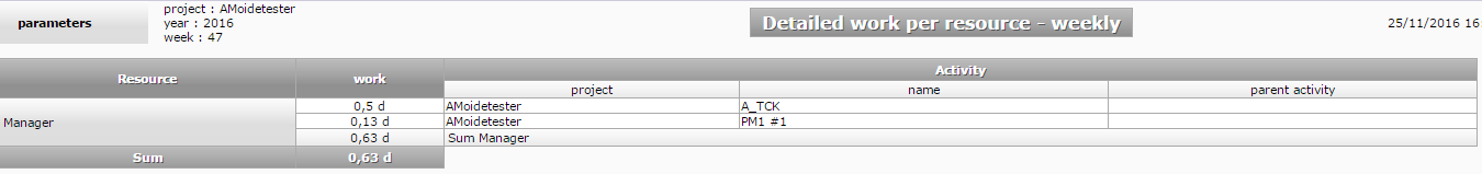 - Run report "detailed work per resource":