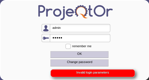 ProjeQtOr free project management software - Invalid login parameters - ProjeQtOr