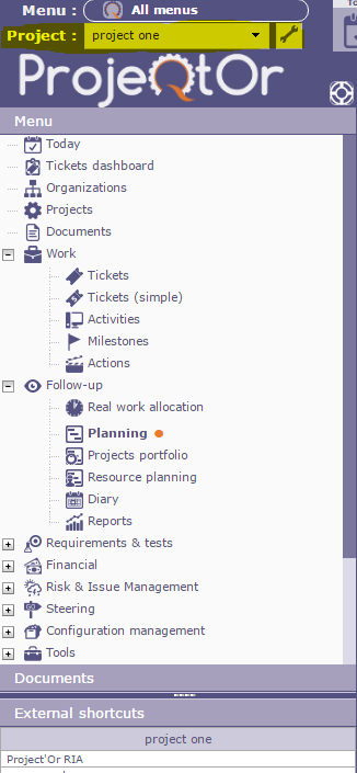 ProjeQtOr free project management software - Choose projects for the planning - ProjeQtOr