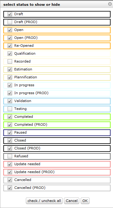 ProjeQtOr free project management software - Filtration of workflow view - ProjeQtOr
