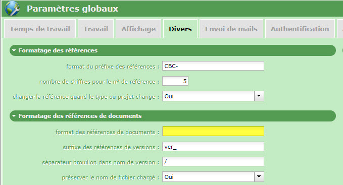 On document reference, you can only use {PROJ} for project code, {TYPE} for type code, {NUM} for auto numbering and {NAME} for name.