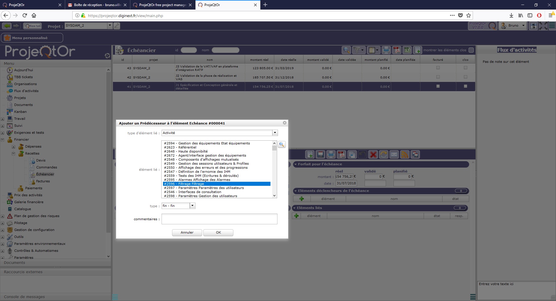 ProjeQtOr free project management software - In Financial / Incomes / Terms add trigger elements not operational - ProjeQtOr