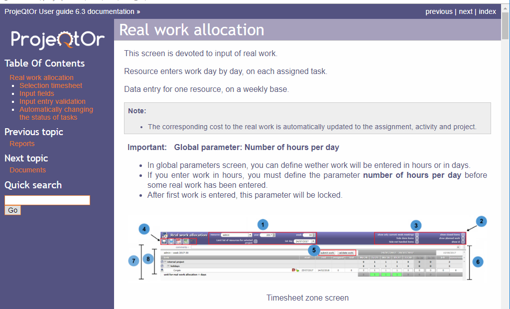 As new user, you should read this. Many things are explained like how to use Real work allocation screen.