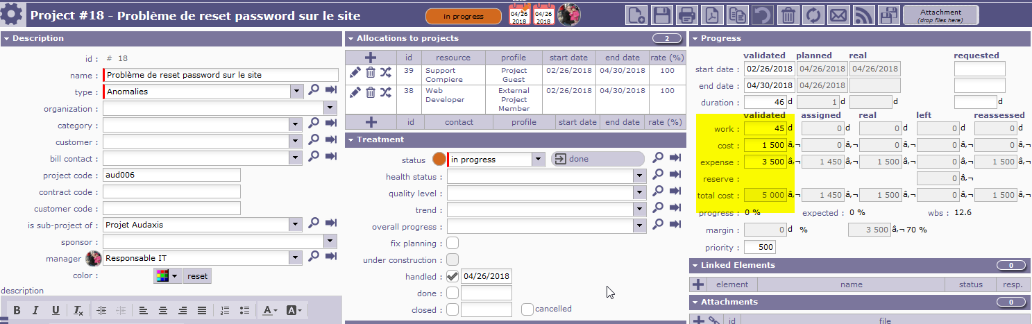 NB : I'm afraid you'll be able to raise alert for costs (resource costs) but not for expenses