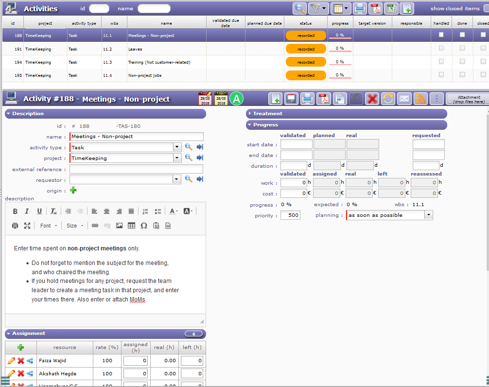 I think only Responsible sees it on today screen, so I think it is side effect of above remark.2. The resources see the Timekeeping (admin) tasks in Today screen, but not in Real work allocation screen.