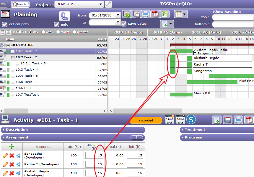 Yes, I know. In this case, three people are assigned work for task#10.1, as shown in the screenshot below:On the real work allocation screen, the tasks of all projects with assigned jobs always appear. Without any assigned job, they do not appear.