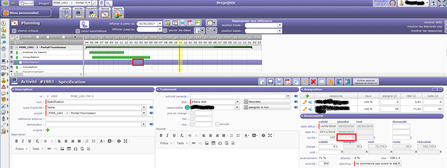 Look at this planning : activity "specification" is well displayed on Gantt but left work is set with 0.