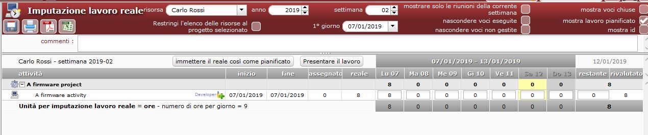 I have created a user (Carlo Rossi) and a project (A Firmware Project). Inside the project I've created an activity (A Firmware Activity).