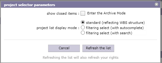 (this pop-up appears where you click on tool icon at right of project selector)