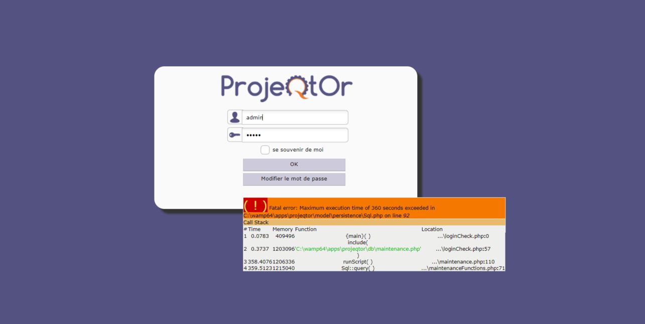 We followed the setup instructions under a Windows 19 server and at the first connection to ProjeQtor, we get the following error: