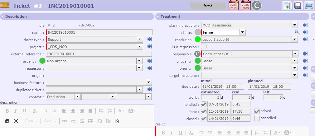 When I created a ticket on this activity and the resource treated it, I've got 2 lines for the same activity, and in one of them it's not possible to fill the real work, which it seems normal, because the real work was written in the ticket information.