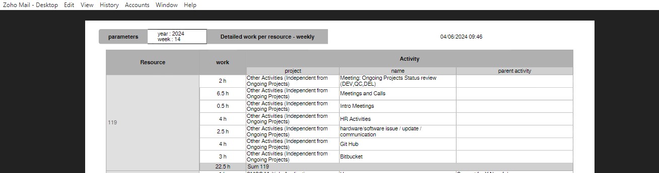 A. I don't have the same problem looking directly at this report in projeqtor.