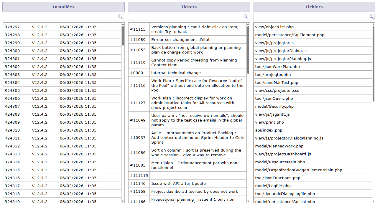 I like that the "new" history contains screenshots to highlite the changes, but I misss the old simple history, where all the changes, bugfixes are listed and where you could track when what kind of changes have been done including the corresponding ticket number of the track DB until to the very beginning of ProjeQtOr.