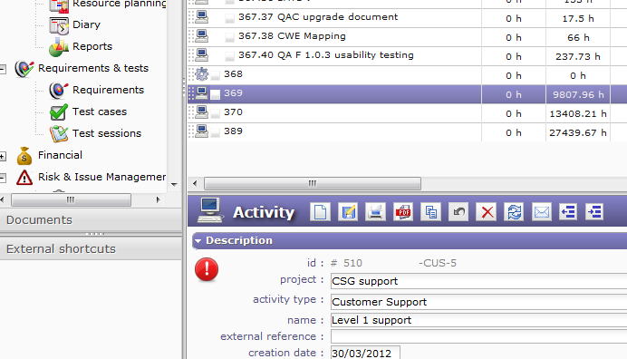 Could you check in planningelement table lines wihr refType='Activity' and refId in (368, 369, 370, 389)