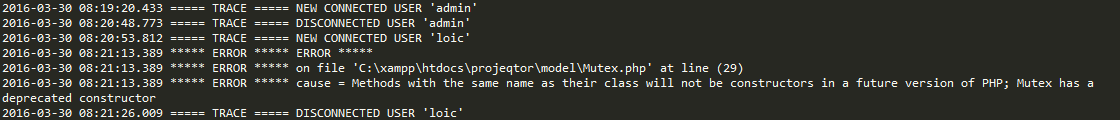 2016-03-30 08:21:49.845 ***** ERROR ***** cause = Methods with the same name as their class will not be constructors in a future version of PHP; Mutex has a deprecated constructor"