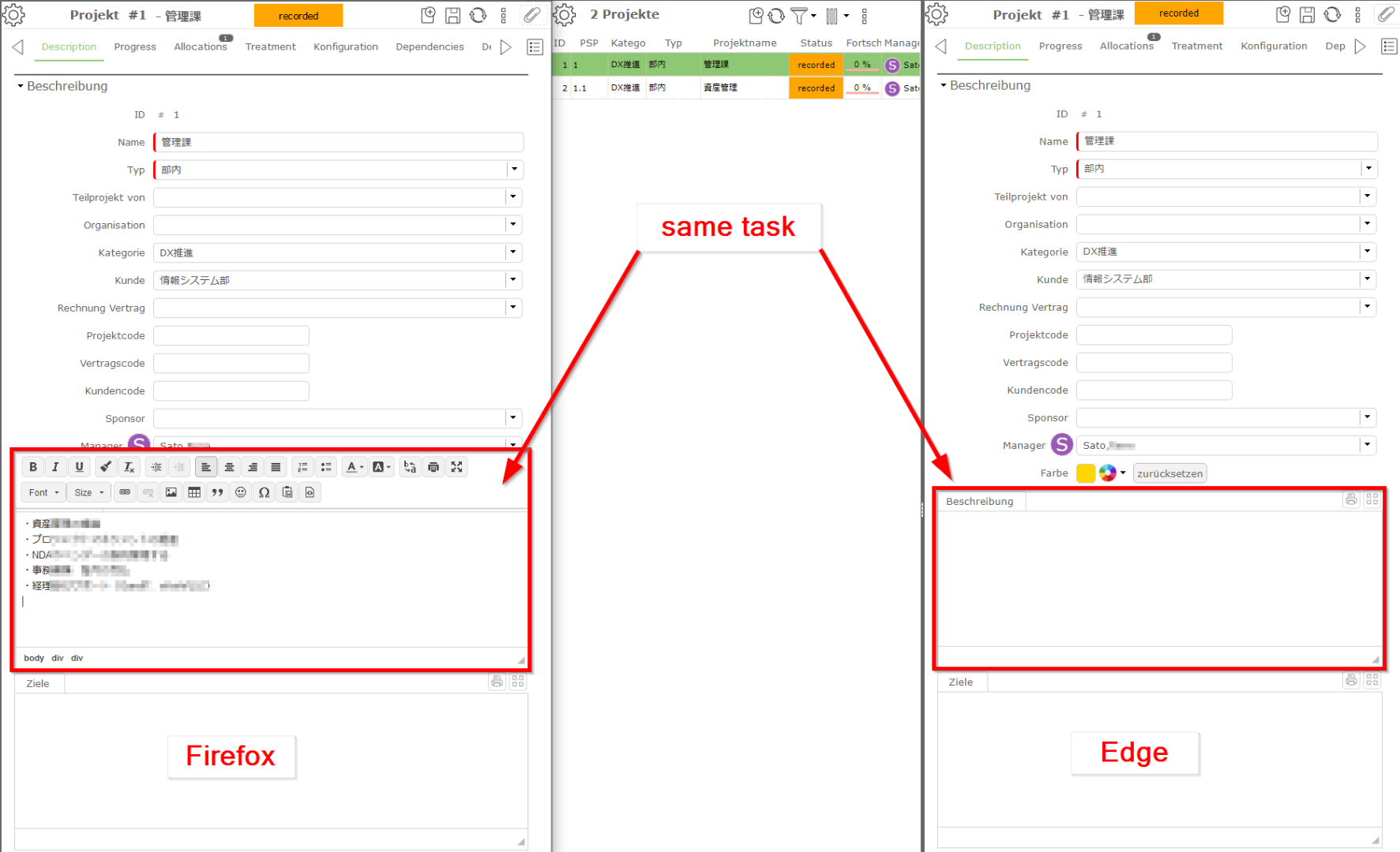 The only one is, if I want to add a description in a project, I are not able to get an Editor.