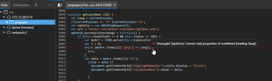 I changed to English and the error is gone. But the CKeditor is still available.