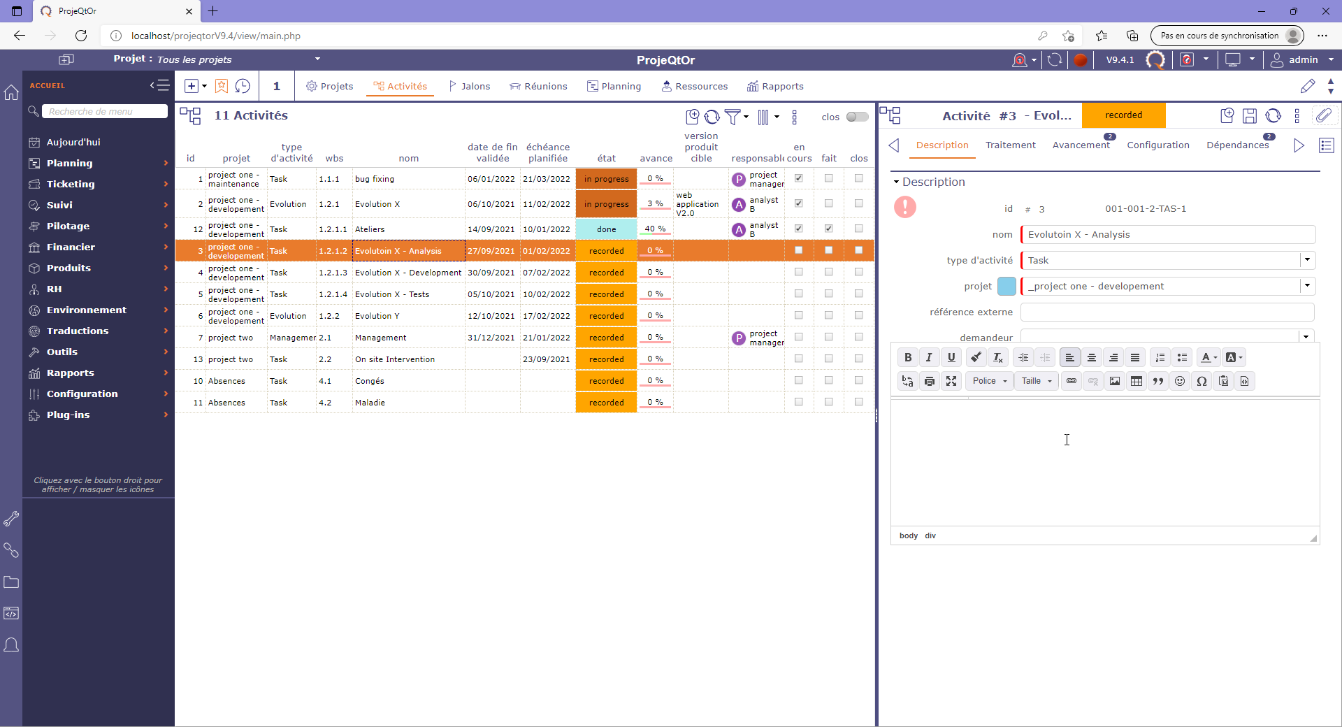 I installed first time Projeqtor V9.4.1 yesterday on Debian.