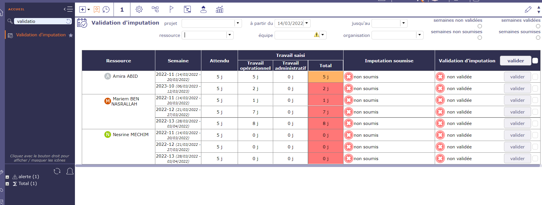I am talking about this, please why the project manager can validate all imputation of these resources