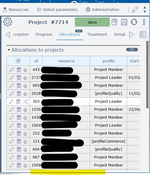 2. In a Project details view, the Allocations list can be cut off on the right hand side, and no horizontal scroll bar is available. Seems to be dependent on the length of the persons' names (?), as this was seen only on some projects, even with the small screen size.
