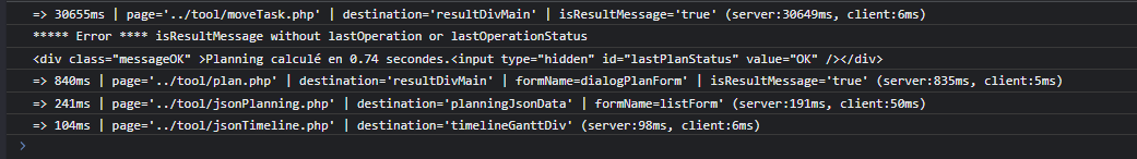 For example, on my instance it's take 30655ms on ProjeQtOr online demo : this same action take 153ms !