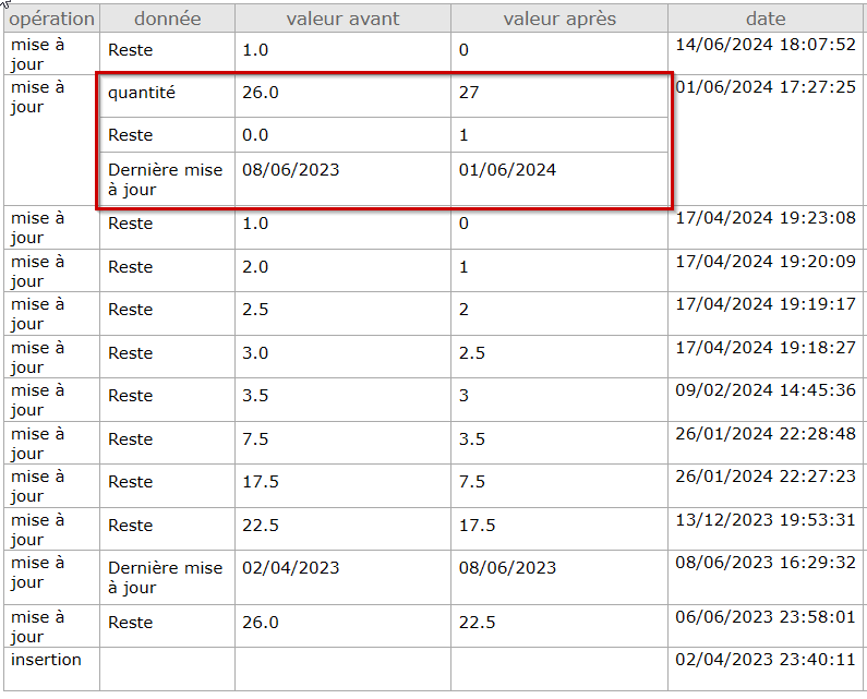 I've realized the leave earned quantity changes on the previous period when the new one is opened and the employee gets an extra day. For instance, this employee is in the company since 12th of june 2014, so he has 10years of the company this year and for the period 01-06-2024 - 31-05-2025, he shall have 25+2 days, but the previous period should remain at 25+1 days. It doesn't happen. When the new period has been created, the previous one was changed: