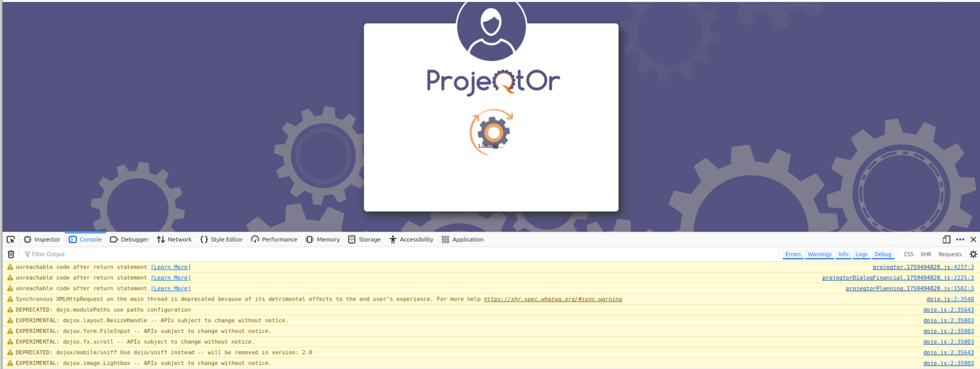A screenshot of the debug window of Firefox shows only some warnings (attached too)