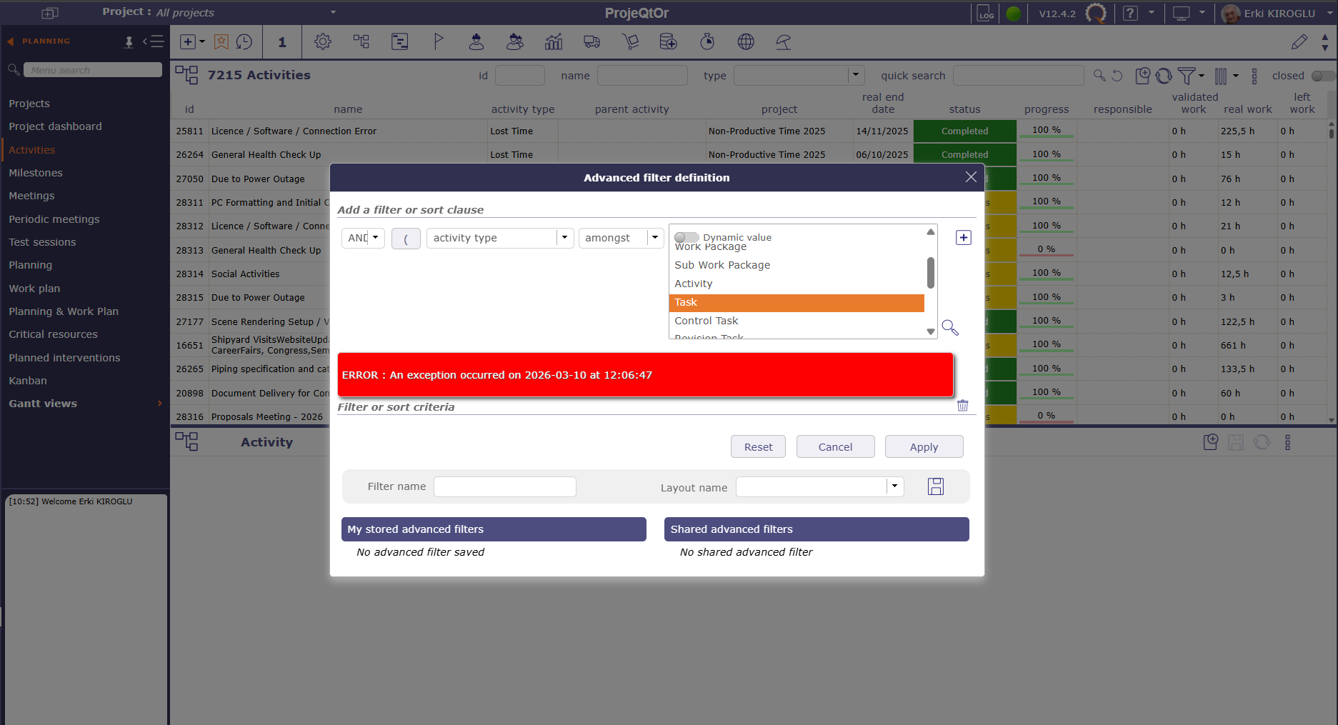 2026-03-10 10:36:39.243 ***** ERROR ***** [V12.4.2] [1] => #0 C:\Program Files (x86)\EasyPHP-Devserver-17\eds-www\projeqtor\tool\addFilterClause.php (569) -> htmlDisplayFilterCriteria()