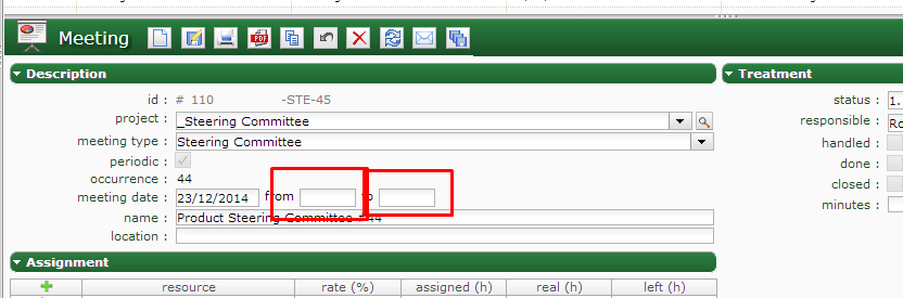 ProjeQtOr free project management software - Periodic Meeting - Times not carried into individual meetings - ProjeQtOr