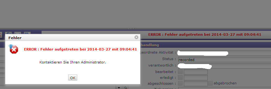 If i try to save an new assigned activity i get this message: