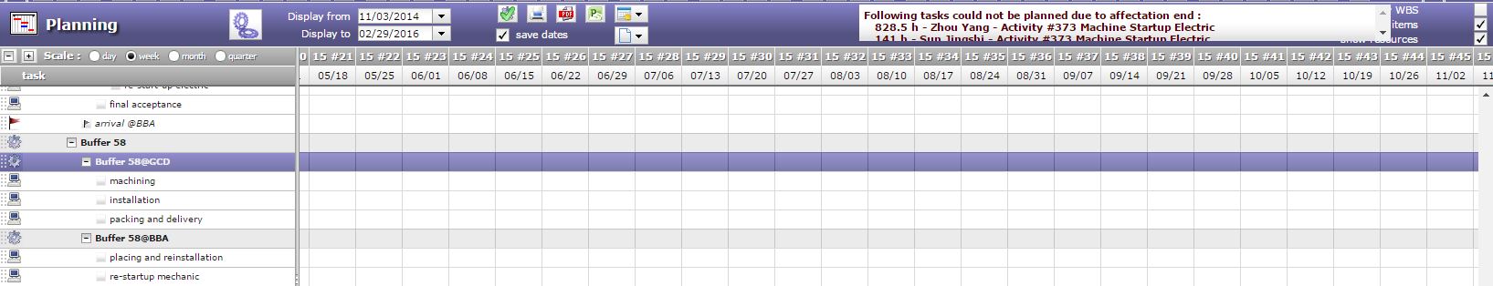 Right, this seems to be a but : with project selector criteria to "show closed", all items are visible (project, activities, ...) but nothing appears in planning view.
