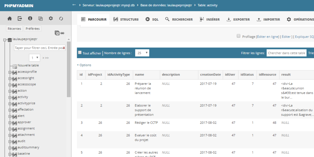 Thank you for your reply and proposed solution. I implemented it but nothing changed. Please find attached flies which showed the problem that happens : as you can notice in the Database screenshot, everything is correct in the "Name" field of the "Project" Table ; all the words using accented letters are correctly dysplayed.