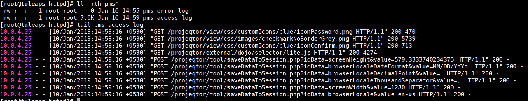 error log is with 0 size in Webserver also.