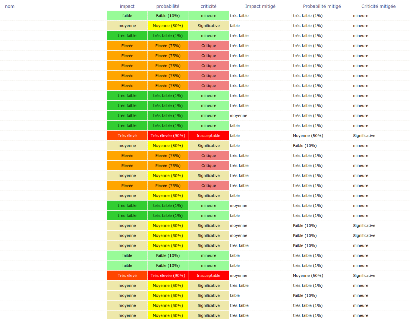 And, when you display list of risks, with value without and with mitigation, you loose the coloring of fields and then lisibility (see above).