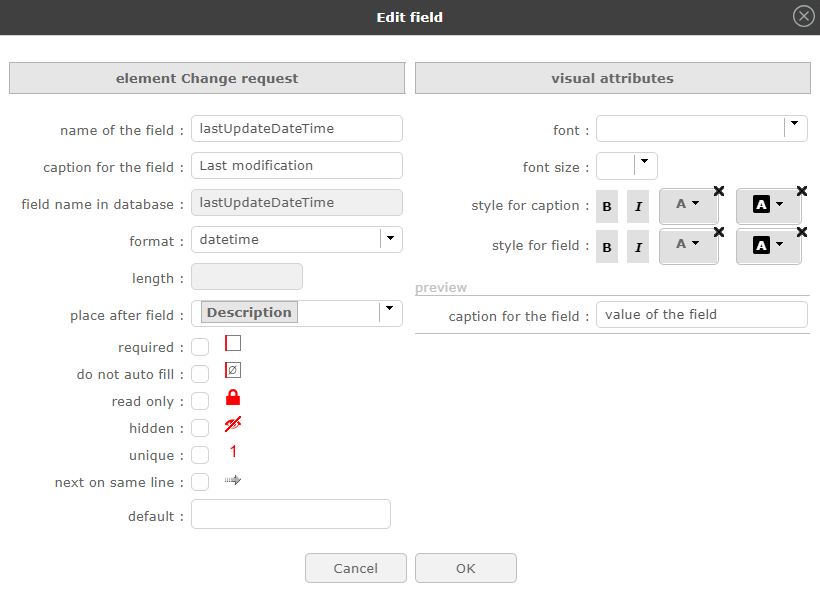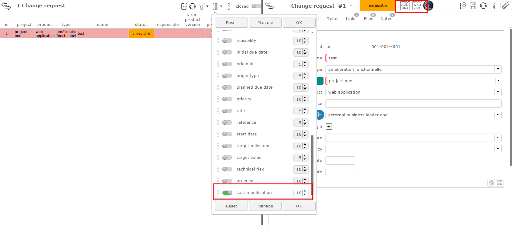 once the field has been created you will see the creation AND modification informations in the header of the detail area and you will see in the columns the newly created field which will allow you to sort your lists