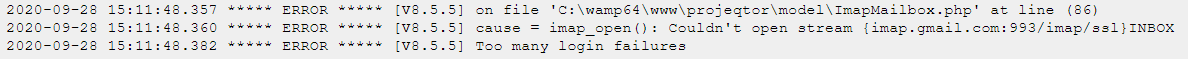 I got this error message: "Too many login failures - mailbox closed"