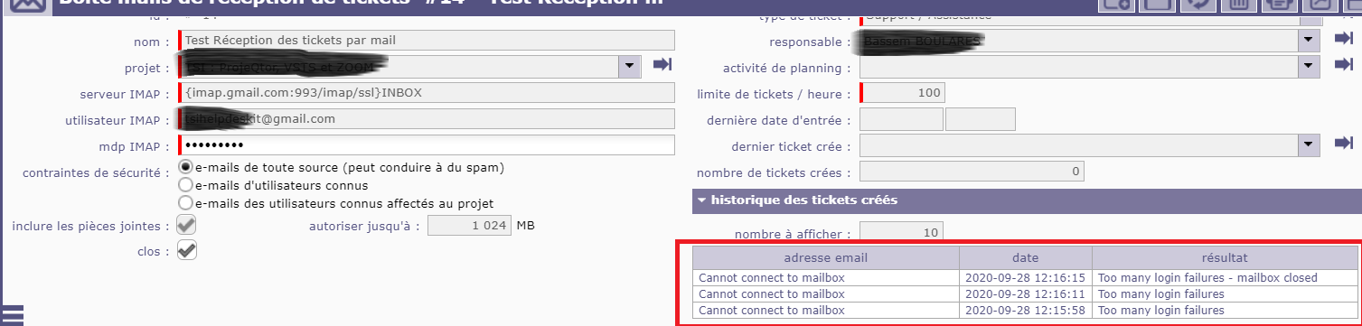 ProjeQtOr free project management software - How configure the possibility to receive tickets from emails - ProjeQtOr