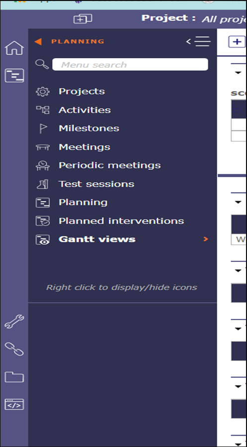 ProjeQtOr free project management software - Left Side Menu - ProjeQtOr