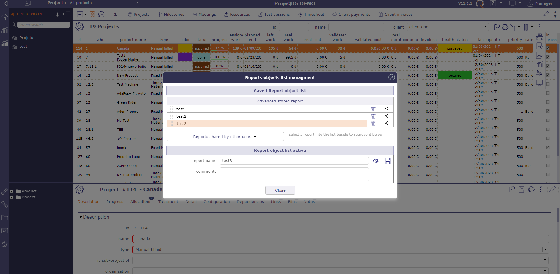 I would like to ask for the new features in V11.1.0 as described in the Change History e.g. "Store a List to define a Report", is it to be used under the "List Reports" in the DEMO site? I clicked on the view button and errors showed up (as attached). I also looked through the online manual and cannot find description on the new features yet. Is there any description/tutorial on how to operate? Thanks.