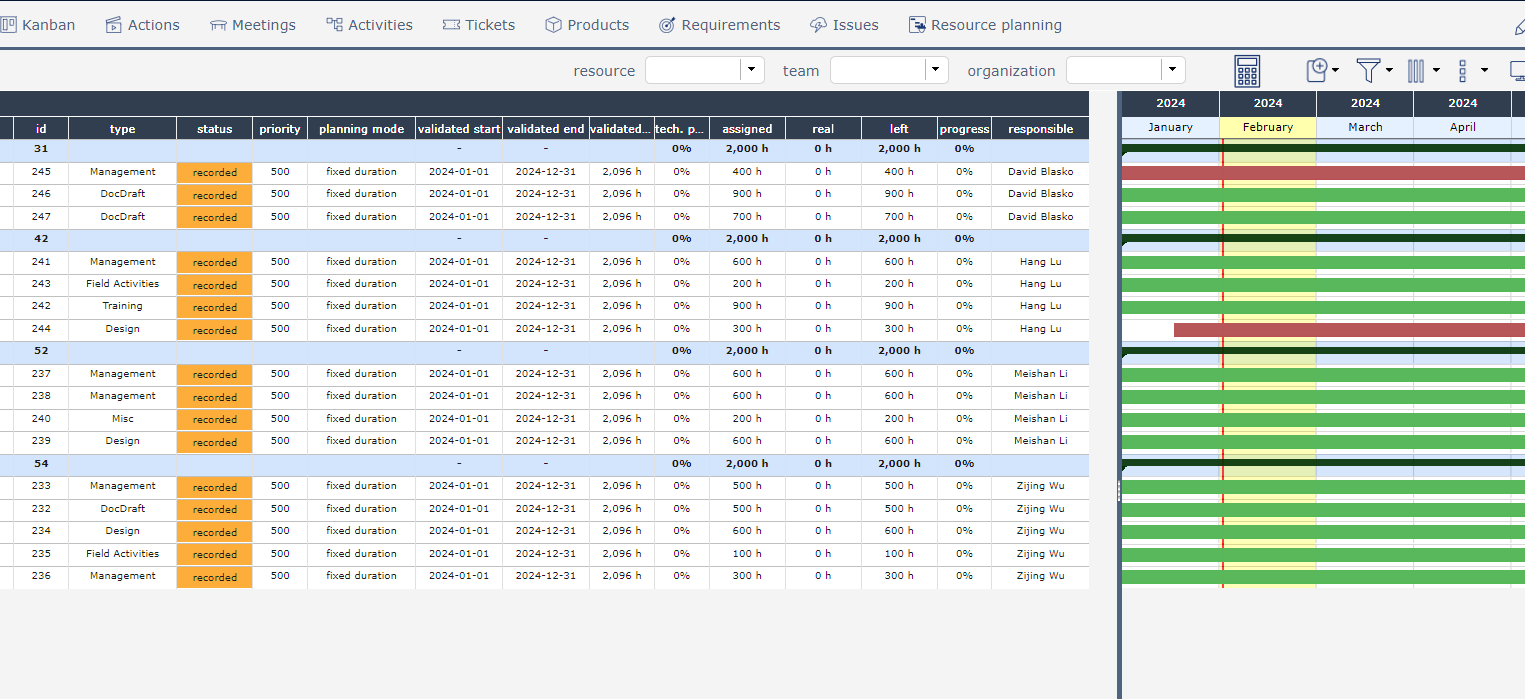 ProjeQtOr free project management software - resource planning sometimes show content sometimes show nothing but head - ProjeQtOr