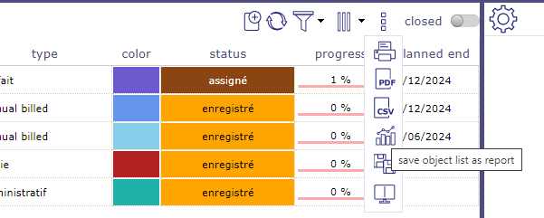 ProjeQtOr free project management software - List for Report - ProjeQtOr