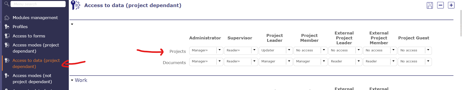 How can I add only this possibility to profileProjectLeader ?