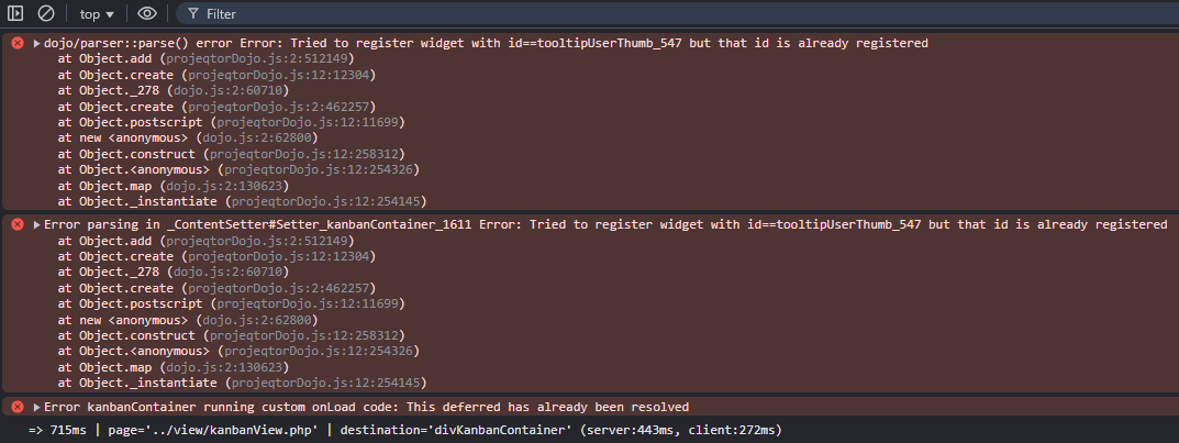 Also the error codes in the console are exactly the same as in your timesheet post. Again, I am not sure if these errors are related to your problem. Did you get the latest logs? Are there also errors in the browser console?