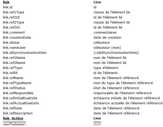 But, in this case, what is the meaning of link_Activity (Lien) in available fields in template report for project ?