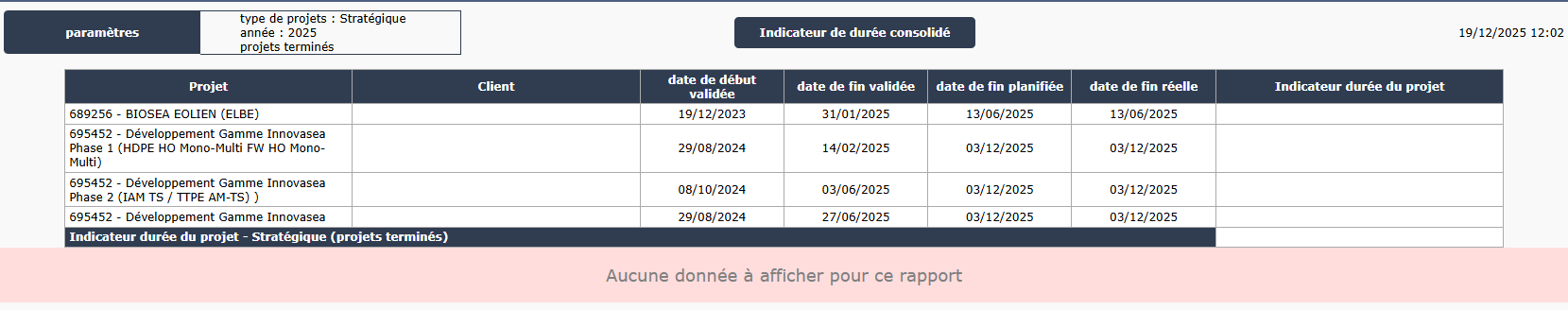and why (see attached file) I have no value KPI for some project on KPI duration consolidated ?