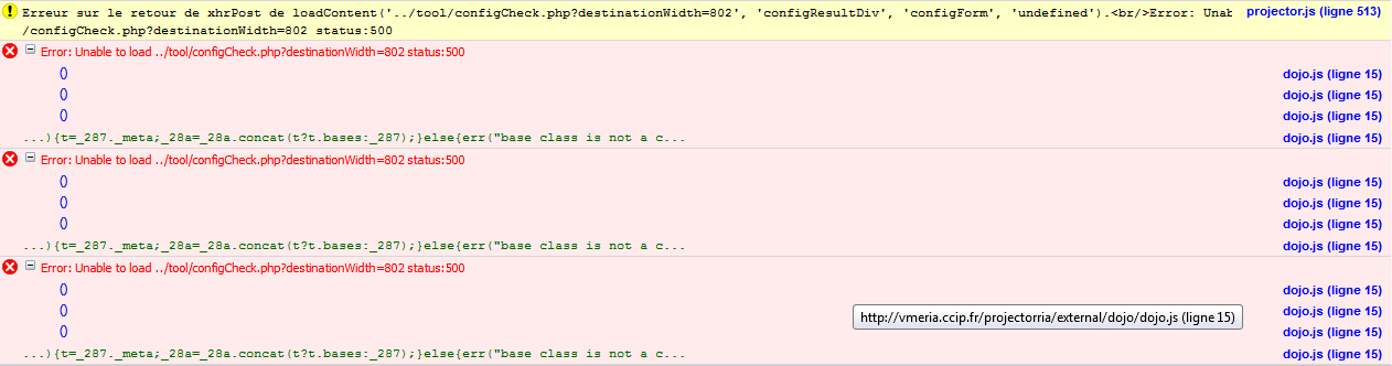 Erreur sur le retour de xhrPost de loadContent('../tool/configCheck.php?destinationWidth=802', 'configResultDiv', 'configForm', 'undefined').<br/>Error: Unable to load ../tool/configCheck.php?destinationWidth=802 status:500
