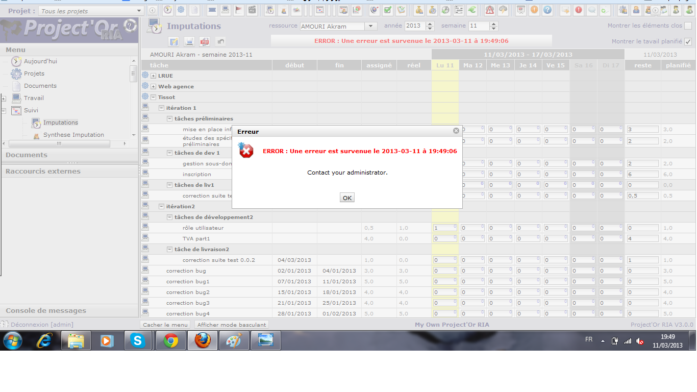 I have a problem in the menu REAL WORK ALLOCATION, the ressource can't save his imputaions because the big number of the activity assgnied so when i want to chek the option show clos elements. the problem when i put some activity as clos the problem persist and the activity that are supposed to be closed are n't.