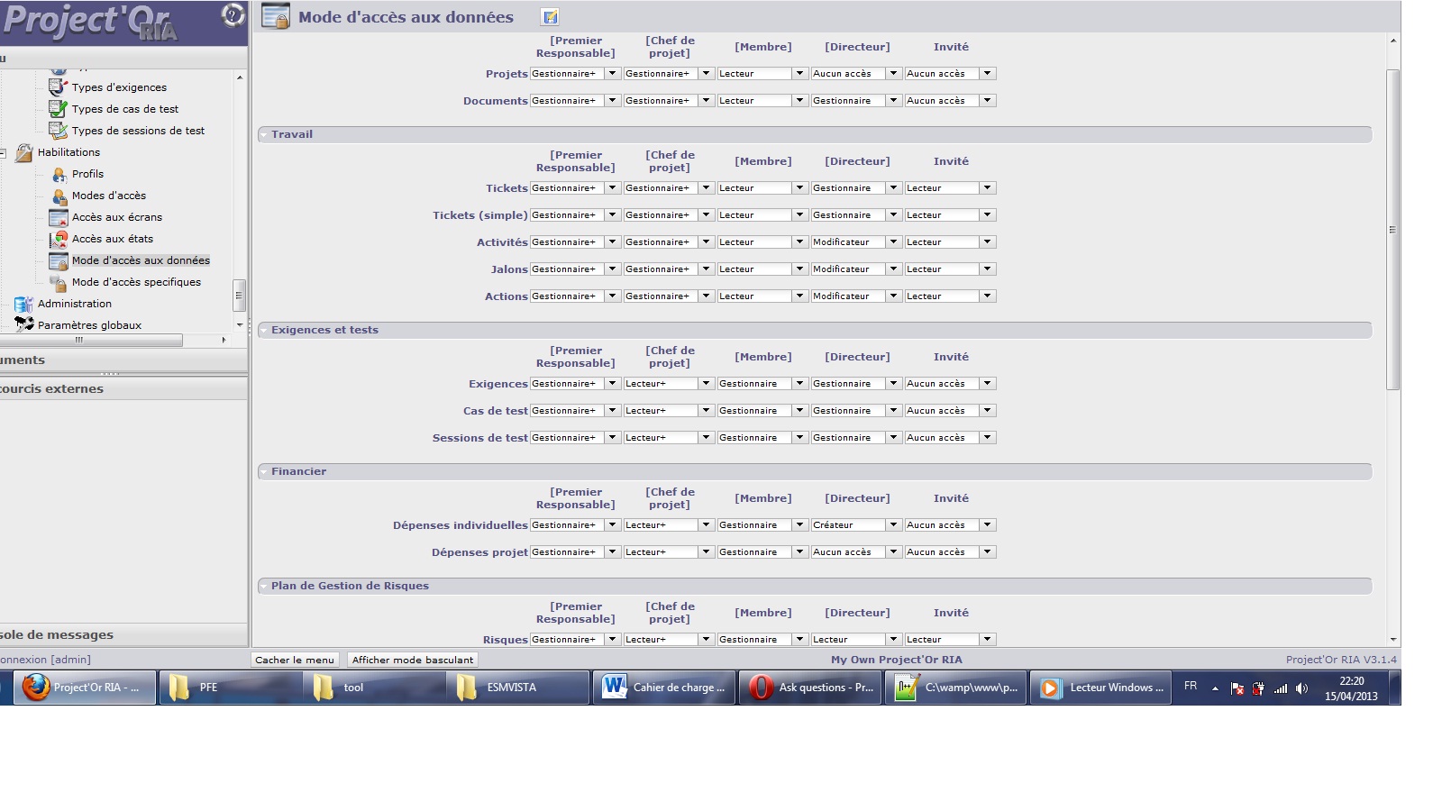 ProjeQtOr free project management software - Access type - ProjeQtOr